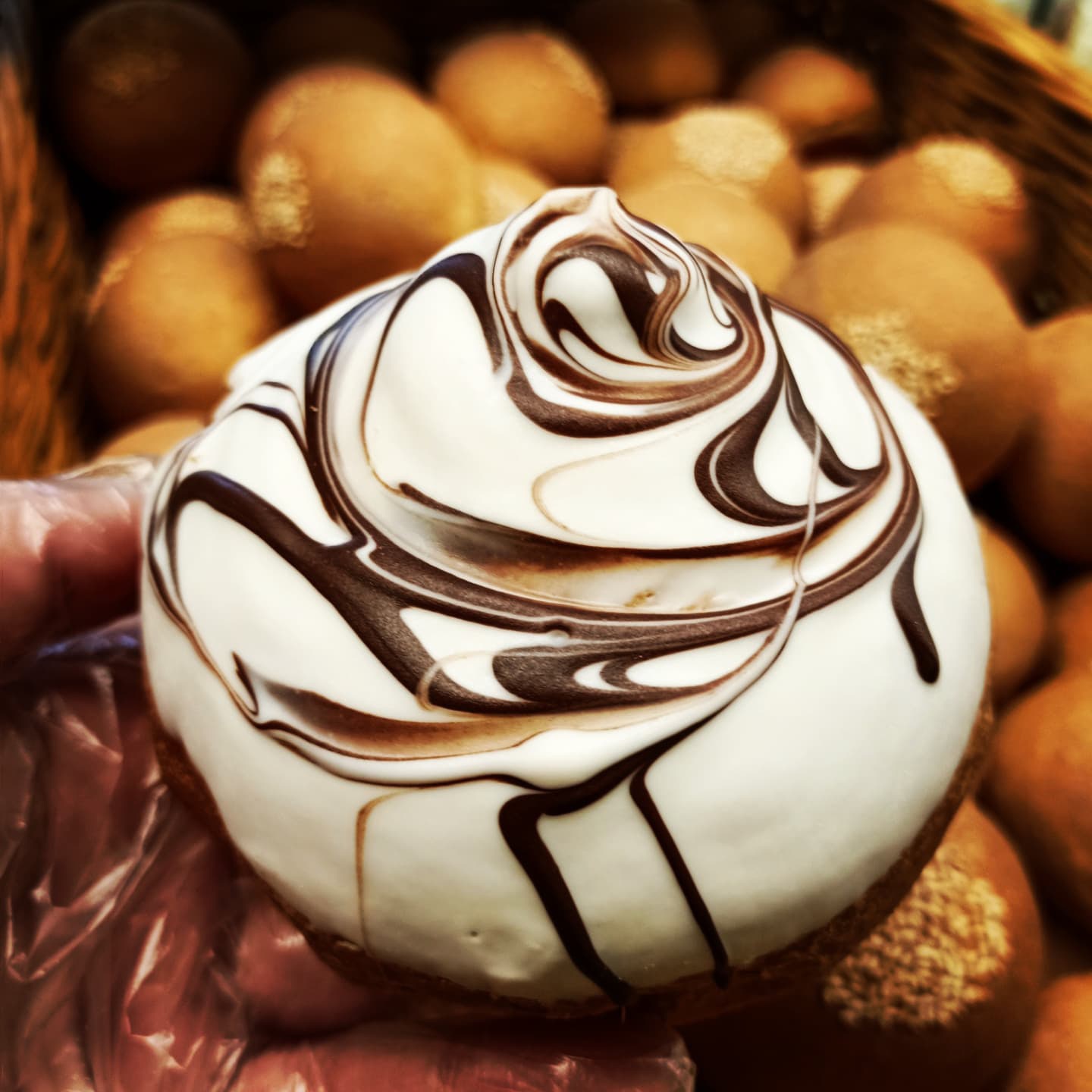 Тесто слоено-дрожжевое сладкое (мука пшеничная хлебопекарная в/с "экстра", фарина "0", молоко питьевое, яйцо куриное, маргарин, сахар, соль, дрожжи хлебопекарные, ванилин), сахар, глазурь шоколадная белая, темная