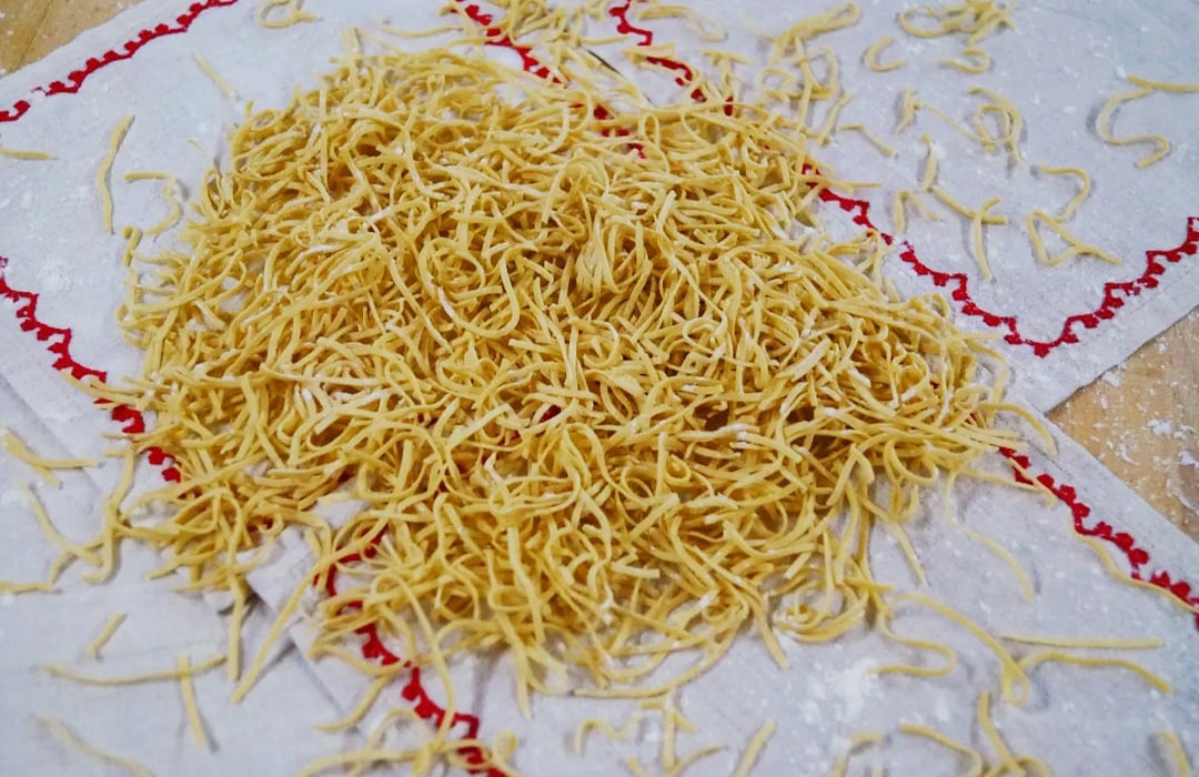 Лапша Домашняя (фасовка). Мука из твердой пшеницы для макаронных изделий высшего сорта, яйцо куриное, соль пищевая.