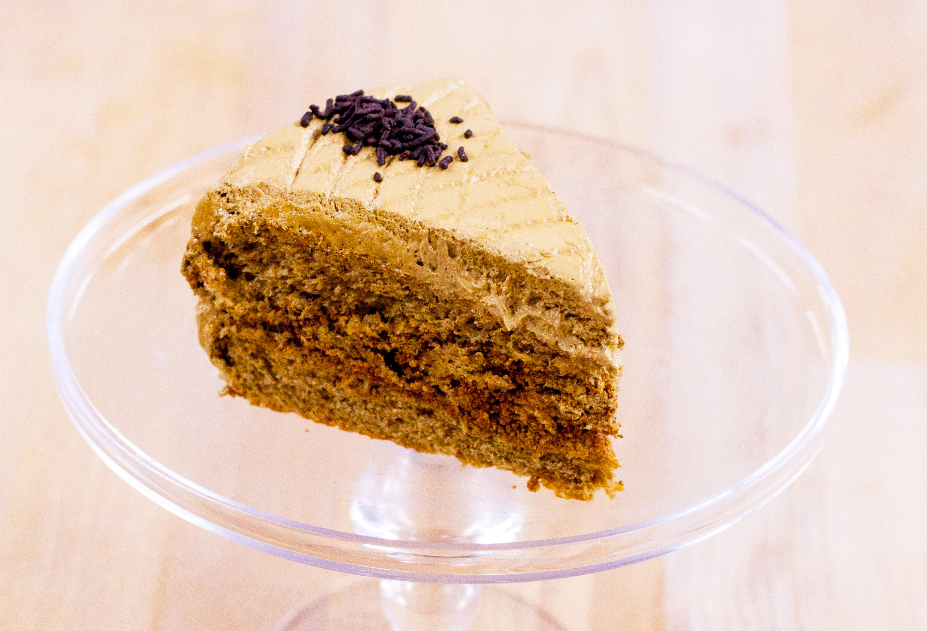 Крем: масло сливочное (пастеризованные сливки), ликер кофейный, кофе натуральный, сахар; бисквит: мука пшеничная в/с, яйцо куриное, желток яичный, сахар, сок лимона, кофе натуральный, разрыхлитель (дигидропирофосфат натрия)
