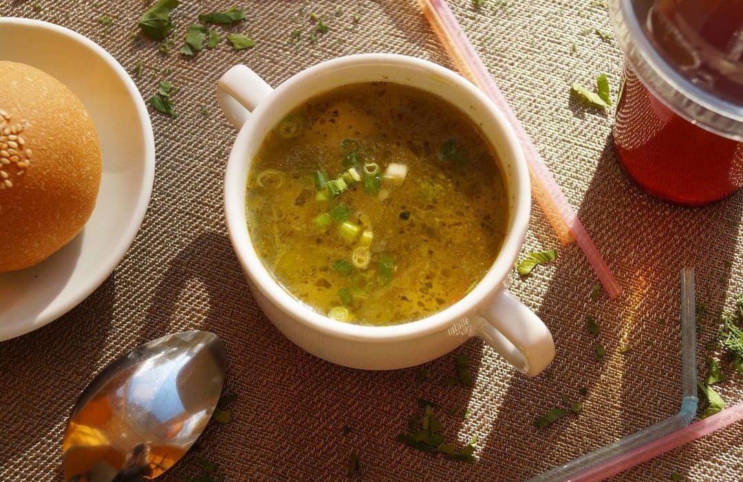 шпинат, бульон говяжий, картофель отварной, огурцы маринованные