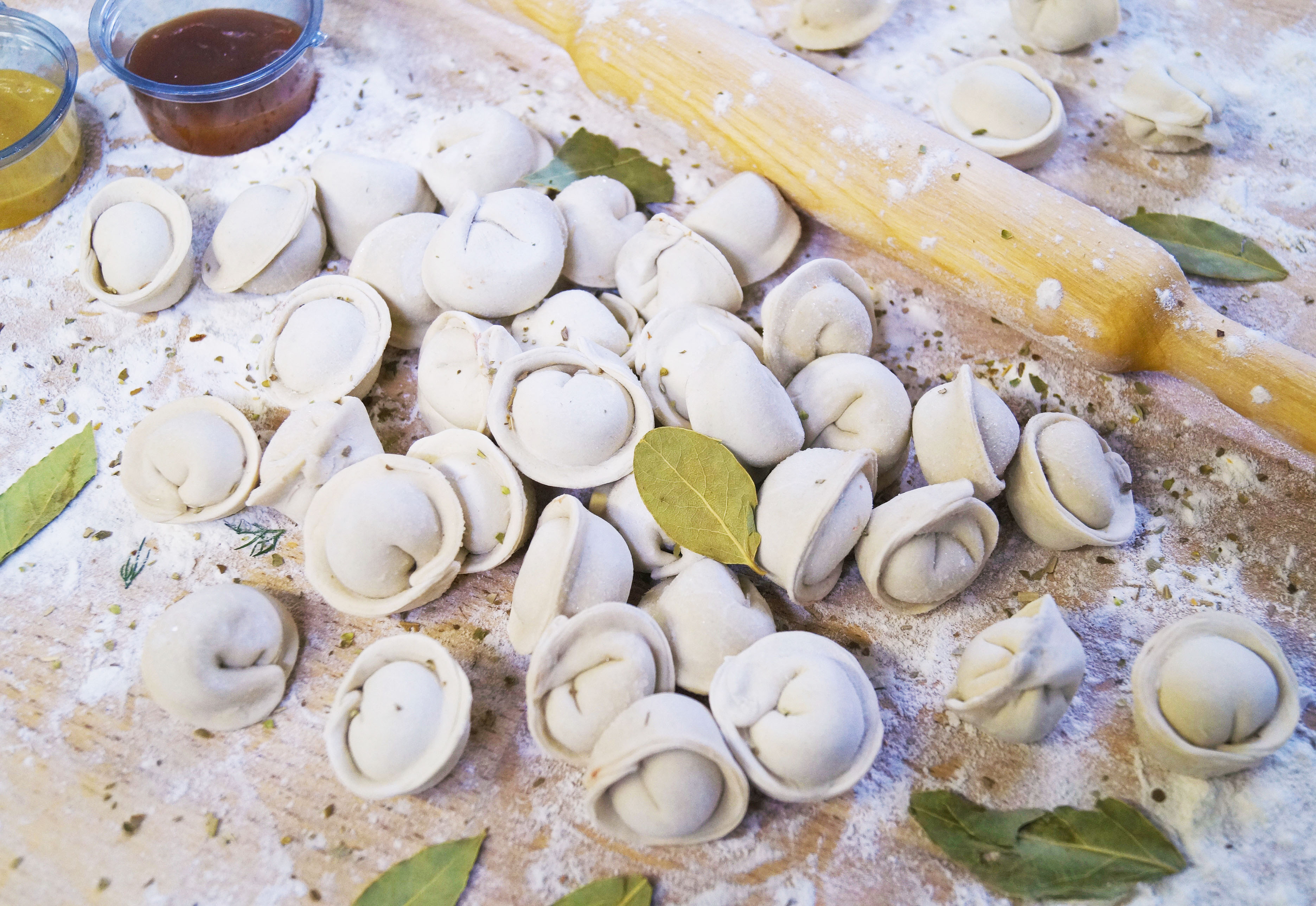 тесто пельменное, свинина, шпик свиной, лук-репка