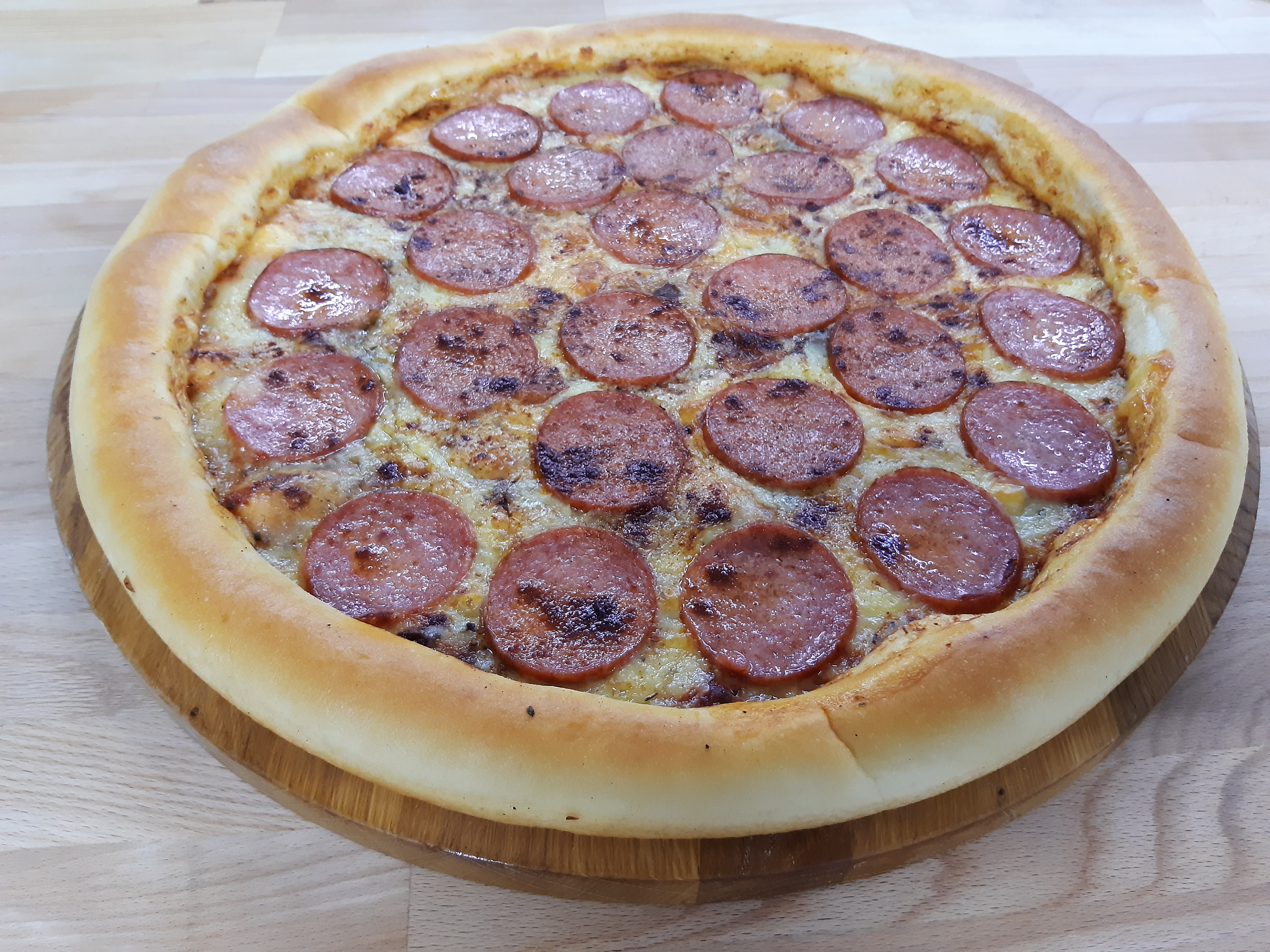 Колбаса полукопченая, сыр моцарелла, соус-кетчуп, паприка сладкая (специи)